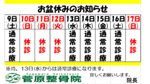 【お盆休みのお知らせ】